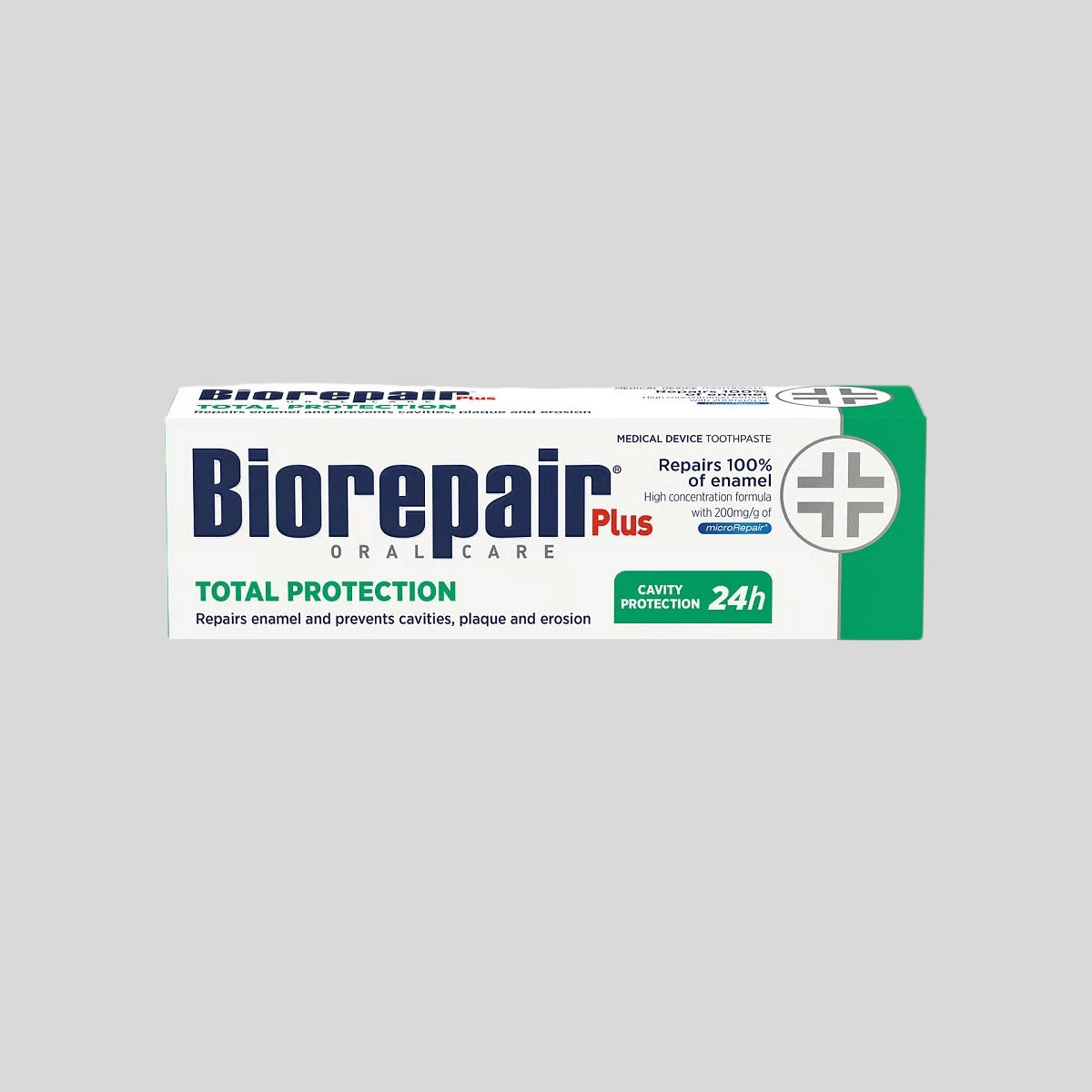 Biorepair Plus Total Protection – tai dantų pasta kasdienei dantų priežiūrai. Formulėje naudojami microRepair® komponentai, kurie padeda palaikyti dantų emalio būklę. Pasta švariai valo dantis, suteikia gaivų burnos kvapą. Be fluoro.