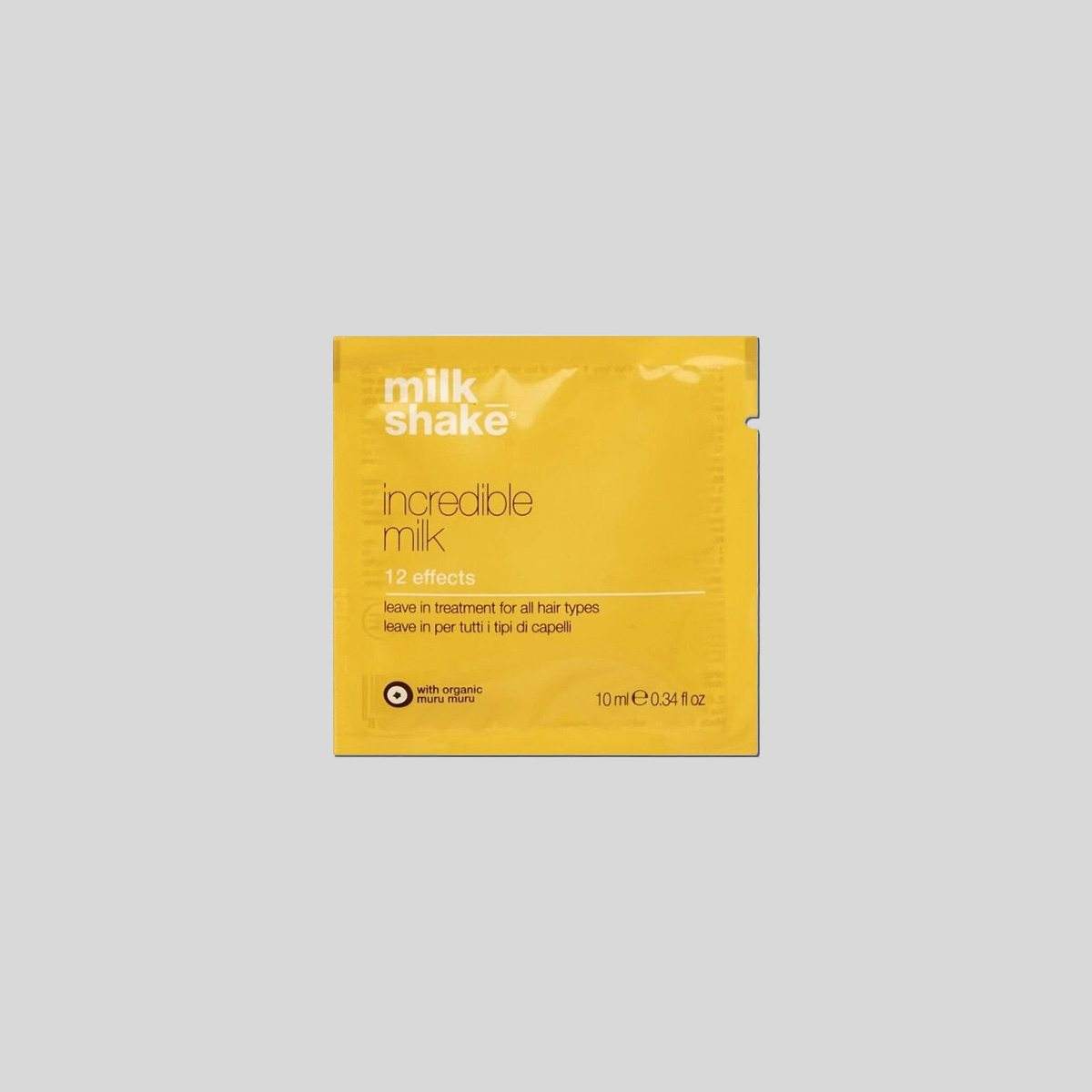 Milk Shake Incredible Milk 12 effects – tai nenuplaunama purškiama plaukų priemonė, suteikianti 12 maitinamųjų ir apsauginių savybių. Nuo lengvesnio plaukų iššukavimo iki maitinimo – ši daugiafunkcinė priemonė suteikia plaukams tai, ko labiausiai reikia. Sudėtyje esantys pieno baltymai ir murumuru sviestas kondicionuoja ir minkština plaukus, o mėlynių, aviečių, papajų ir mangų vaisių ekstraktai suteikia antioksidantų plaukų apsaugai.