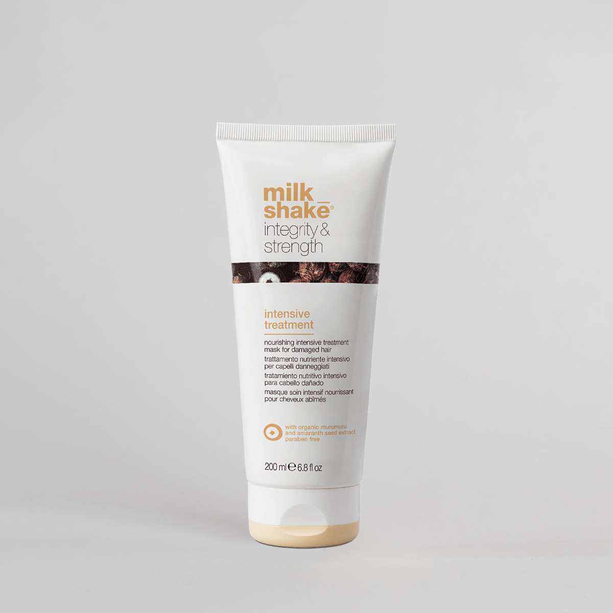 Milk Shake Integrity and Strength – tai sodri kreminė intensyvaus poveikio kaukė, kuri giliai maitina ir minkština plaukus, mažina jų šiaušimąsi, palaiko natūralų plaukų stiprumą. Ji padeda sustiprinti lūžinėjančius plaukus.