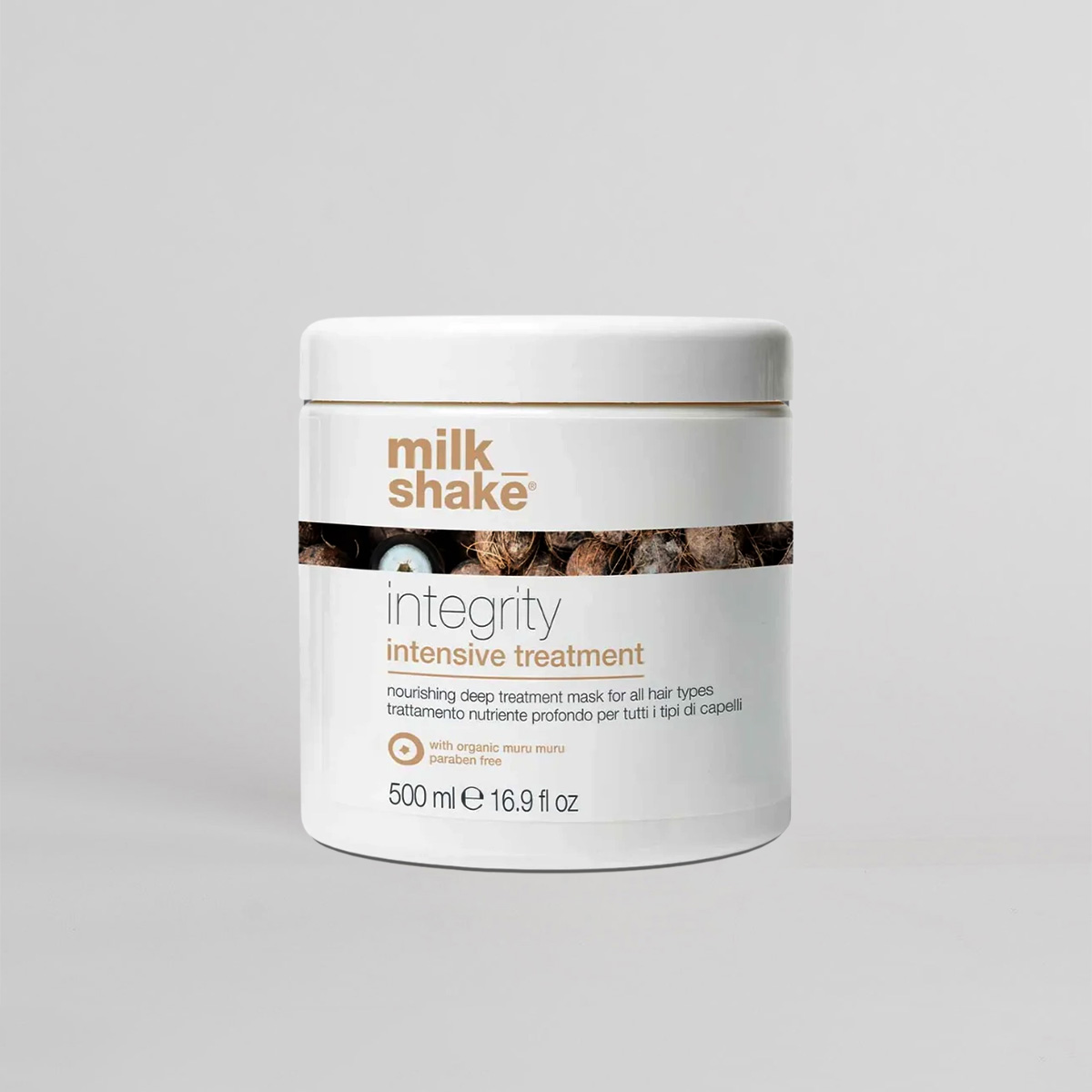 Milk Shake Integrity and Strength – tai sodri kreminė intensyvaus poveikio kaukė, kuri giliai maitina ir minkština plaukus, mažina jų šiaušimąsi, palaiko natūralų plaukų stiprumą. Ji padeda sustiprinti lūžinėjančius plaukus.