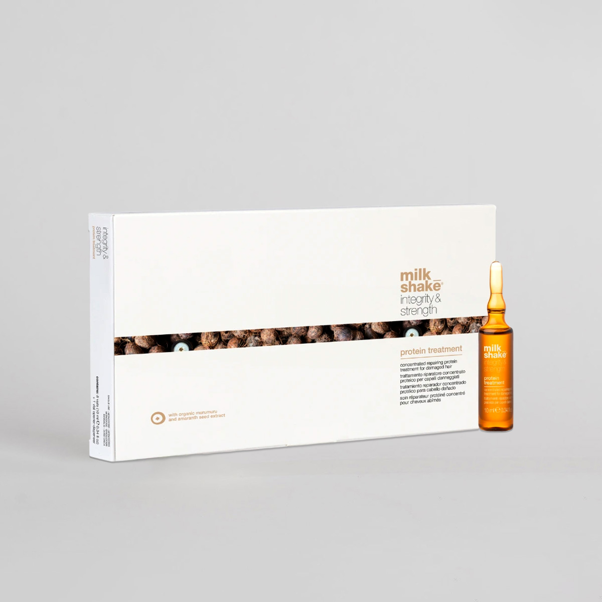 Milk Shake Integrity and strength – tai plaukų ampulės, kurios padeda atkurti natūralų plaukų minkštumą ir blizgesį. Priemonė giliai maitina ir stiprina pažeistus ir chemiškai paveiktus plaukus.