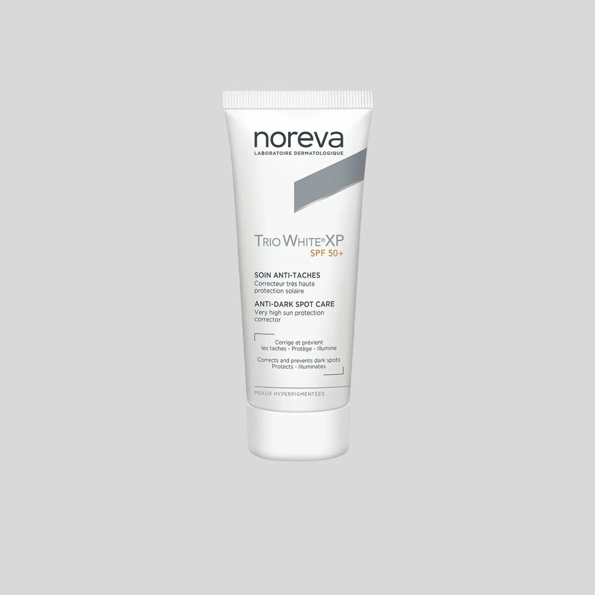 Noreva TRIO WHITE XP veido kremas nuo saulės su apsauginiu filtru SPF 50+. Jis apsaugo veido odą ir suteikia jai skaistumo. Lengva ir nelipni tekstūra, kuri nepalieka baltos kaukės efekto. Skirta suaugusiesiems ir paaugliams nuo 15 metų.